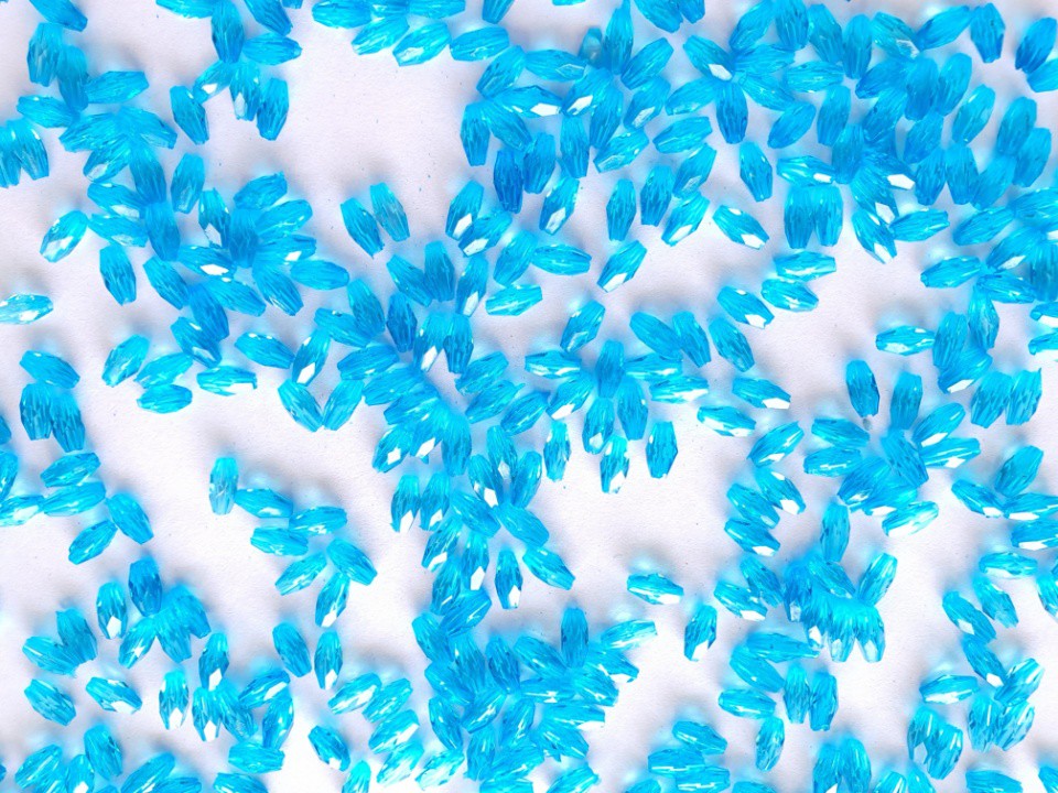 Arrozinho com furo, cor azul claro, tamanho 4x8mm, material acílico, pacote com 50 gramas.