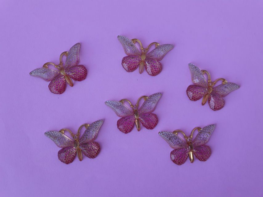 Borboleta de acrílico colorido, com furo para bordar, cores disponíveis rosa e lilás, verde claro e verde escuro, verde e laranja, 02 unidades por pacote.