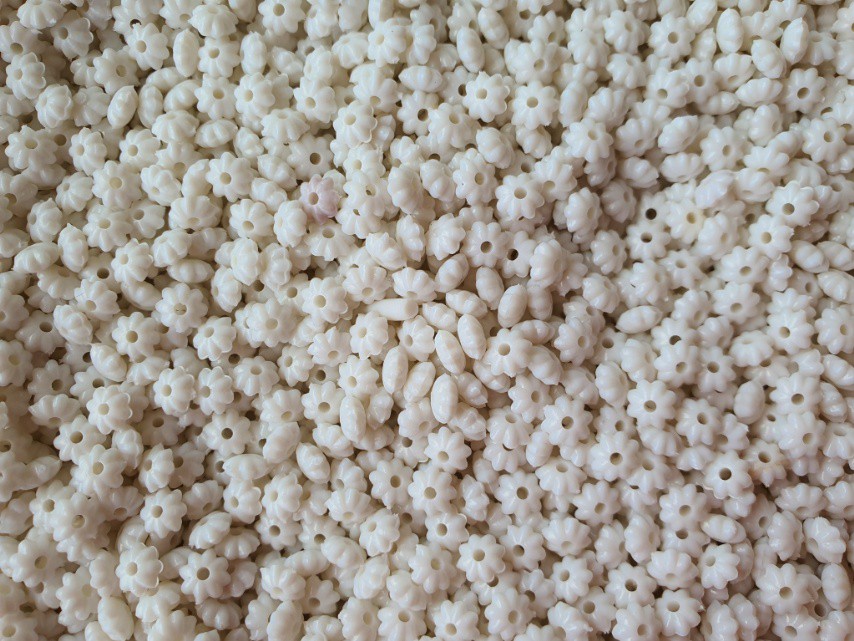 Pitanga cor branca, material acrílico, tamanho 3x6mm, pacote com 30 gramas.