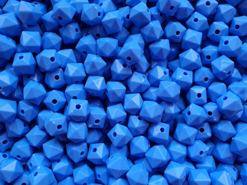 Quadrado com furo, cor azul claro leitoso, material acrílico, tamanho 08mm, pacote com 50 gramas.